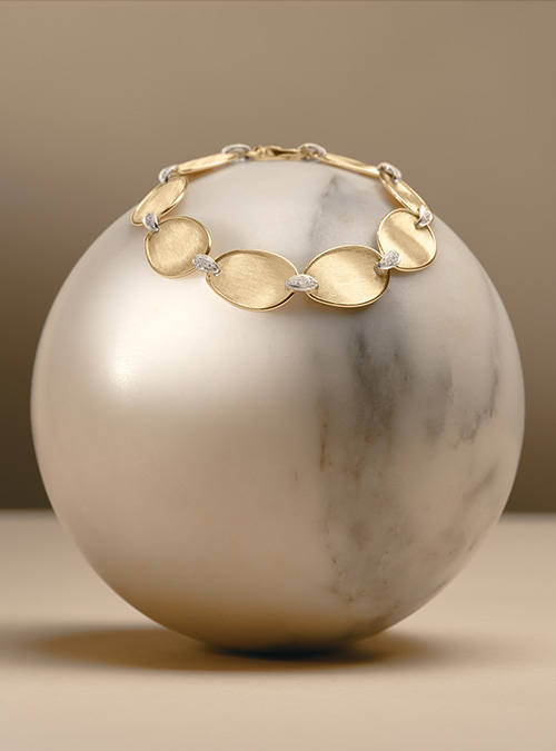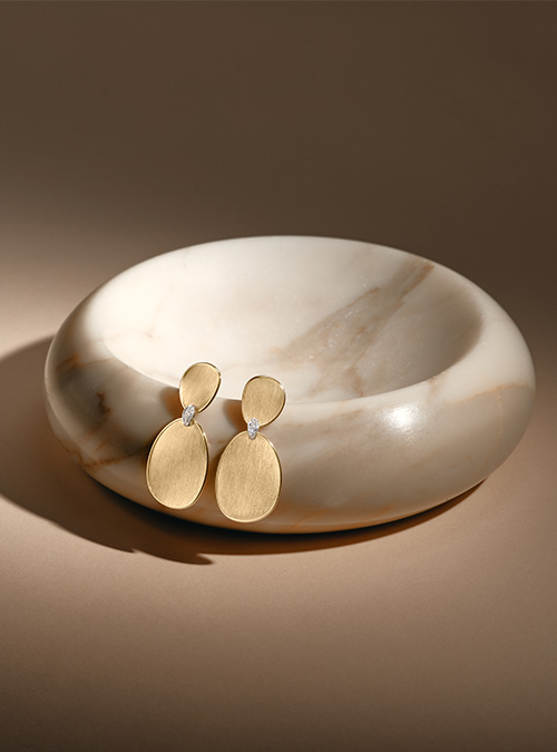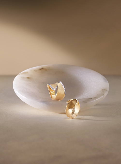 “The inspiration behind the creation of my jewels is rooted in my Venetian origins and the natural settings surrounding my territory. I have always believed in quality and in the secrets of Italian jewelry. The distinct uniqueness of my timeless jewels can be described through artisanal craftsmanship and imperfect shapes, always made in 18 karat gold.”